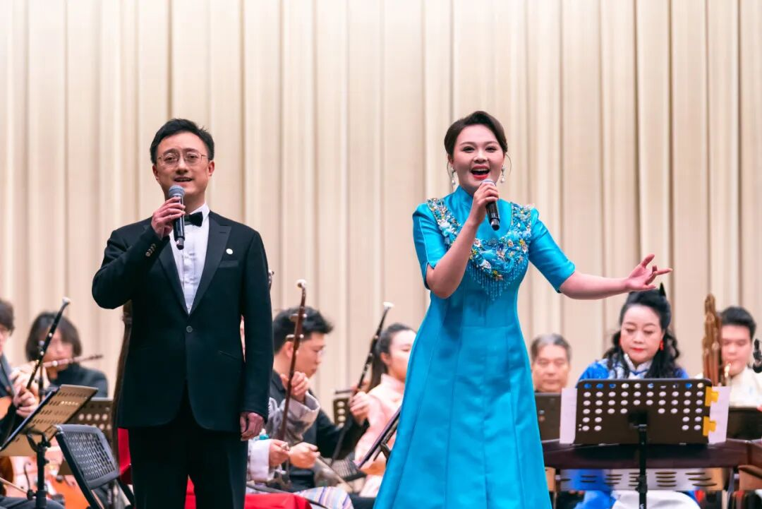 男女声二重唱《珊瑚颂》惊艳亮相。这首承载着时代记忆与家国情怀的金曲,由学校党委副书记郑安阳与中央民族歌舞团青年歌唱家王珂郡联袂倾情献唱,韩学周教授专为此次音乐会量身编配,以匠心独运的艺术表达,将教育工作者的赤诚情怀与艺术魅力完美融合,传递了对祖国、对人民的深情厚谊。真挚动人的演绎直击人心,引发全场强烈共鸣,点亮整场音乐会的高光时刻。
