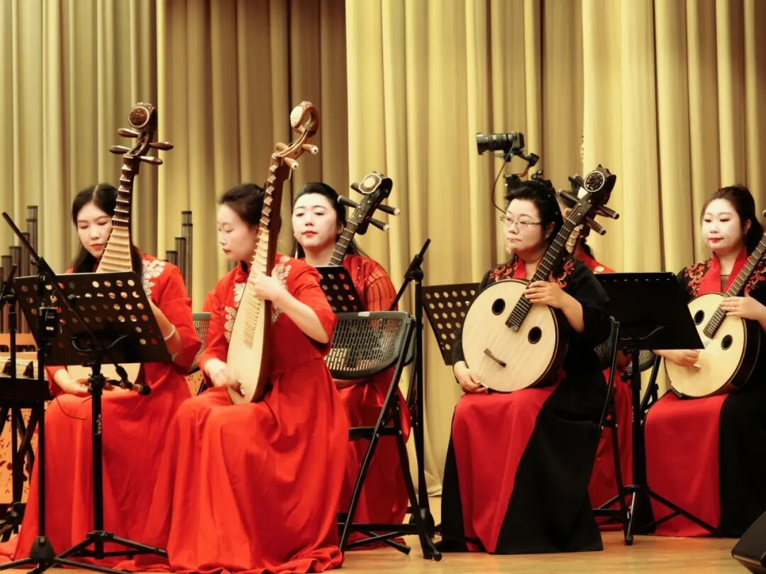 随后,艾捷克与乐队《吾夏克木卡姆》、唢呐独奏《百鸟朝凤》、马头琴独奏《万马奔腾》、羌笛与竹笛《羌·忆》《牧民新歌》、女声独唱《阿里郎》、二胡与四胡《新赛马》、扬琴独奏《黄河》、京胡与雷琴《戏彩》、中阮与手鼓《丝路驼铃》、器乐重奏《声声不息》等十余首作品依次登台,各展风采。涵盖汉族、维吾尔族、蒙古族、朝鲜族、羌族等多民族音乐元素,生动呈现了中华民族音乐的多元魅力与深厚底蕴。